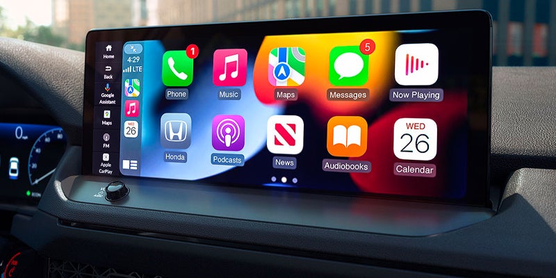 There's room for five in the Accord. It comes standard with cloth upholstery and manually adjustable front seats. The EX adds heated front seats and a power-adjustable driver's seat, while the Sport has a leather-wrapped steering wheel. If you step up to the EX-L, you'll get leather upholstery and a power-adjustable passenger seat, while the Touring adds heated and ventilated front seats. Technology in the Accord starts with a 7-inch touchscreen, HondaLink, and two USB-C ports, but a bump to the Sport gets you a 12.3-inch color touchscreen with wireless Apple CarPlay and Android Auto.