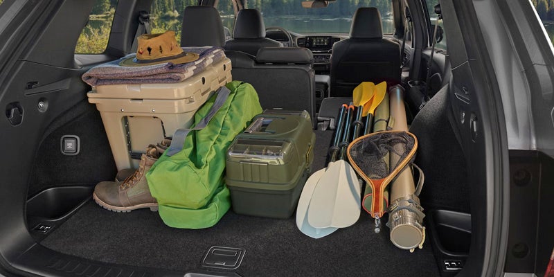Inside the 2025 Honda Passport, you'll find a spacious and well-appointed cabin designed for both comfort and utility. Premium materials, ample legroom, and supportive seats ensure a comfortable ride for up to five passengers. The Passport also offers plenty of cargo space, with up to 77.7 cubic feet of room when the rear seats are folded down. Standard technology features include an 8-inch touchscreen with Apple CarPlay® and Android Auto™ compatibility, while higher trims offer upgrades like wireless charging, heated and ventilated front seats, and a panoramic sunroof.