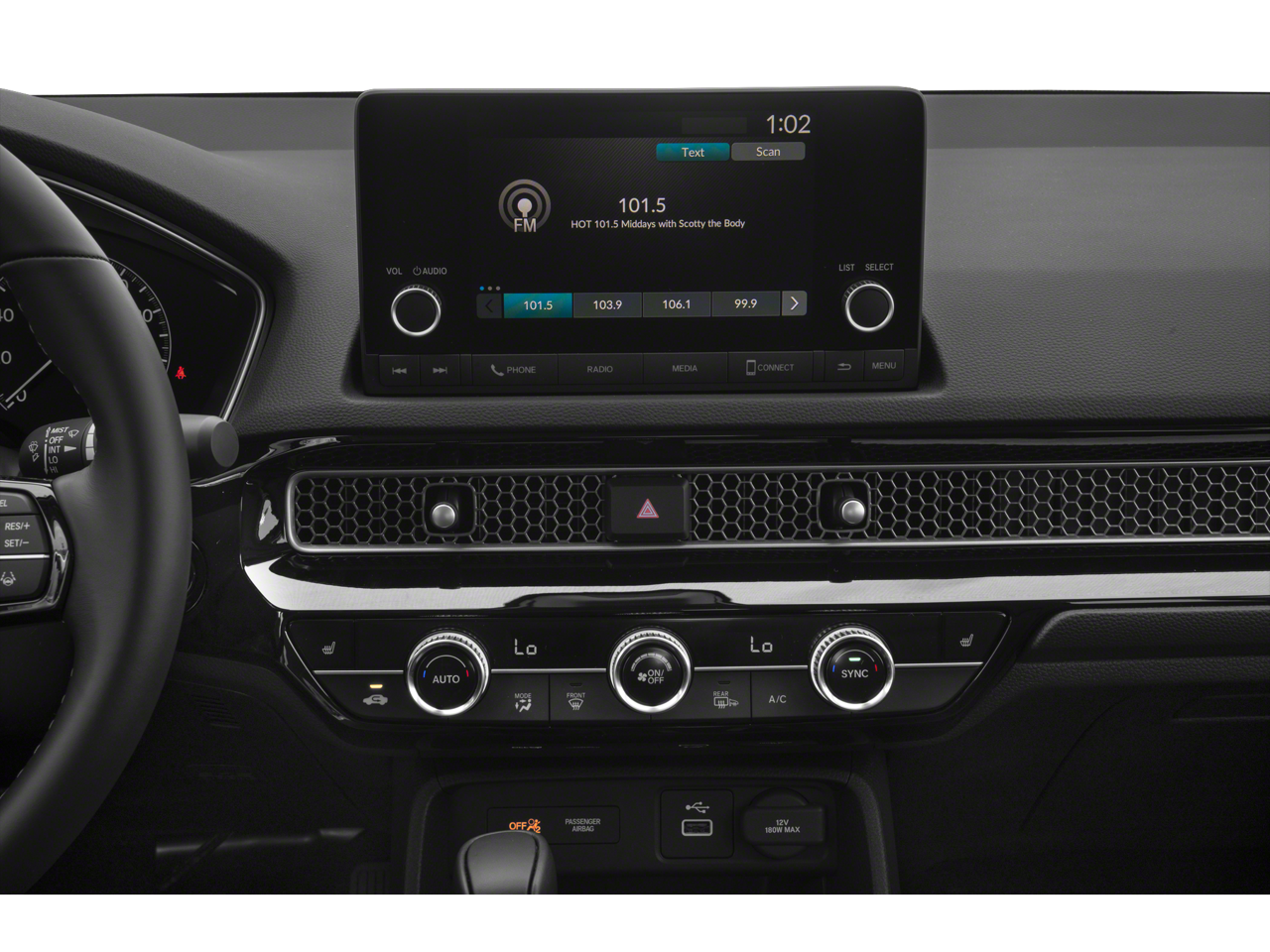 - Radio: 180-Watt Audio System -inc: 8 speakers, 7" touch-screen, 7" TFT meter display, Bluetooth® HandsFreeLink, Bluetooth® streaming audio, Radio Data System (RDS), Speed-Sensitive Volume Compensation (SVC), 2.5-amp USB smartphone/audio interface port in front console, HondaLink, Apple CarPlay compatibility, Android Auto compatibility and SMS text message function