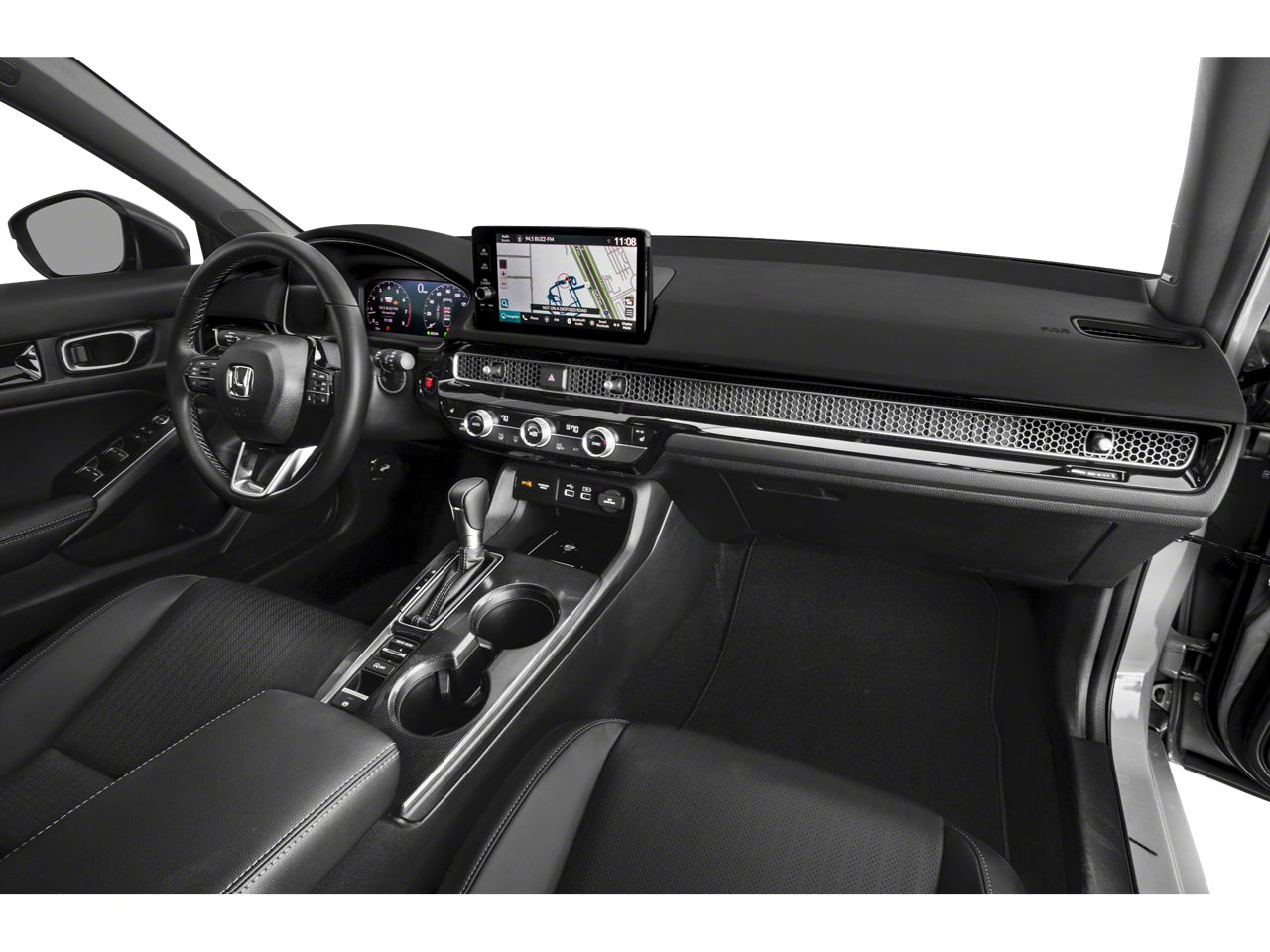 Step inside the Civic Sport Touring, and you'll be greeted by a cabin that seamlessly blends premium materials and advanced technology. The Leather-Trimmed Seating Surfaces and Heated Front Bucket Seats provide unparalleled comfort, while the intuitive Honda Satellite-Linked Navigation System and Bose Premium Audio System ensure you'll enjoy every journey.